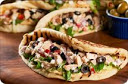 To prepare the chicken salad, combine the chicken, peppers, onion, olives, feta, and dressing in a medium-sized bowl. Fold together until the ingredients are coated with dressing. Set aside.
