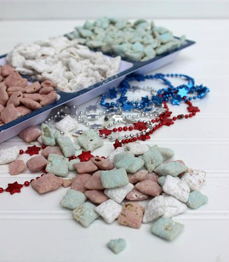 Pour the melted white chocolate over the Chex cereal and mix until the cereal is coated. Add about 2 cups of the cereal to each plastic bag. Working quickly, shake until the cereal is completely covered.