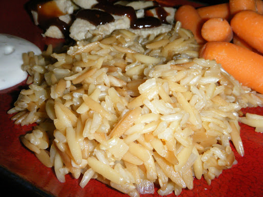 Add orzo and fry until light brown, stirring frequently (once browning starts will cook quickly).