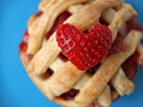 Overfill each pie with the strawberry mixture. Roll out remaining dough and slice into 1/4″ to 1/3″ strips. Lay strips of dough across each pie in a criss-cross pattern, pinching each seam together as you go along.