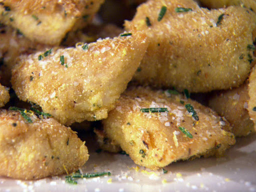 For the chicken: In a medium bowl, mix together the chicken, garlic, rosemary, lemon zest, salt, and pepper. Add the cornmeal and toss until the chicken is coated. Add 1/2 the chicken to the same skillet used to cook the rosemary and fry until golden and crispy, 2 to 3 minutes on each side. Drain on paper towels. Repeat with the remaining chicken. Sprinkle with the rosemary-lemon salt and serve.