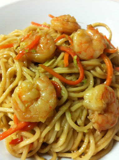 Shrimp Lo Mein is a Chinese noodle dish consisting of stir fried shrimp, pasta, and vegetables. Lo mein has always been one of my favorite things to eat at the Chinese buffet. The shrimp is marinated in soy sauce, ginger, and garlic. If you do not like shrimp, chicken or beef will work as well. This is a simple Chinese recipe that nearly anyone can cook with ease. The recipe makes about 6 servings and can be easily cut in half if needed. Enjoy.