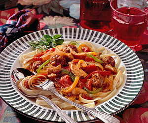 Pasta with Chicken, Sausages, and Peppers - Recipe.com