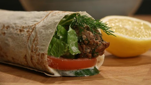 Mix all ingredients together. Cover & refrigerate. Roll ingredients into cylinders and fry until brown. Remove from pan and roll up in flatbread with tomato, lettuce and tzatziki.
