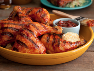 Add the onion and garlic and cook slowly without coloring for 5 minutes. Add the remaining ingredients, give the sauce a stir, and turn the heat down to low. Cook slowly for 20 minutes to meld the flavors. Once the sauce is done cooking, remove about 1-1/2 cups of the sauce and reserve for serving along side the chicken at the table. The rest of the barbecue sauce will be used for basing the legs.