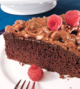 Bake cake until tester inserted into center comes out clean, about 30 minutes. Cool in pan 10 minutes. Run knife around pan edges to release cake. Invert onto rack; remove pan and parchment. Cool completely.
