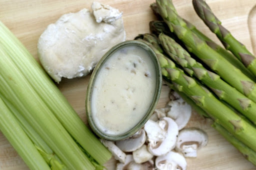 - 1/2 cup main ingredient, diced (mushroom, celery, chicken)