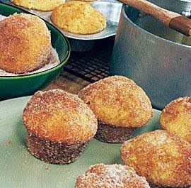 Melt the butter for the dipping mixture. Combine the sugar and cinnamon. When the muffins are just cool enough to handle, remove them from the tin, dip them into or brush them all over with the melted butter, and then roll them in the cinnamon sugar.