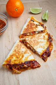 Chicken quesadillas with sweet chili sauce, fresh herbs and plenty of melted cheesy goodness.