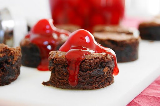 3. Just before serving, top each brownie circle with a cherry and a bit of the cherry liquid from the cherry pie filling.