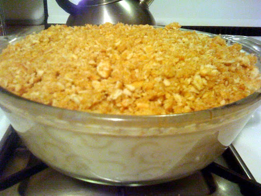 Add cheese mixture to pasta; mix well. Transfer to a 4-quart casserole dish.