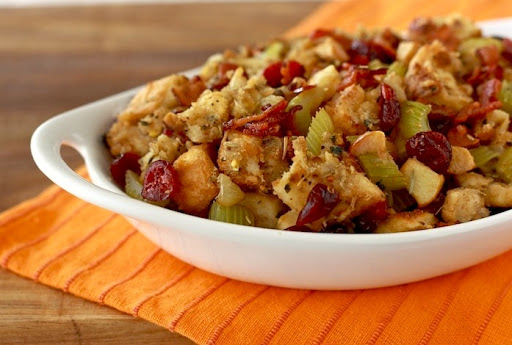 Transfer stuffing mixture to a lightly buttered baking dish and cover with foil.