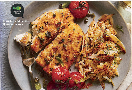 3. combine panko, parsley, and theyme in a shallow dish. Coat fillets with cooking spray; sprinkle with 1/4 teaspoon salt and 1/4 teaspoon pepper. Dredge fillets in panko mixture. Heat 1 tablespoon oil in a nonstick skillet over medium-high heat. Add 2 fillets to pan; cook 3 minutes on each side or until desired degree of doneness. Repeat procedure with remaining oil and fillets.