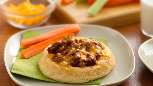 Spoon about 1/3 cup beef mixture into indentation in each biscuit. Sprinkle each biscuit with 1 tablespoon shredded cheese.