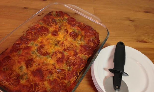 • Pizza toppings of choice (we used pepperoni and sausage)