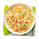 3.Drain the chilled cabbage well, then squeeze in a kitchen towel to absorb any excess moisture; return it to the large bowl. Stir in the carrots and toasted caraway seeds. Add the dressing and stir well; serve cold.