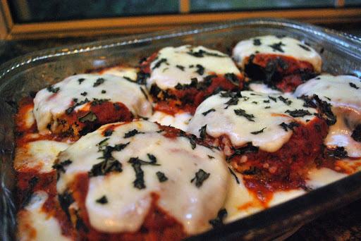 - 3 eggplant, sliced 1/4″ thick (you’ll need 12 slices)