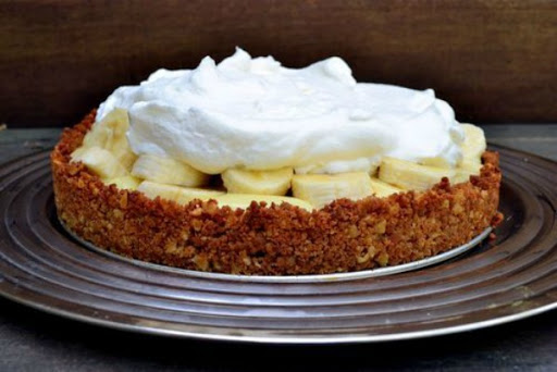 Assemble the pie as close to searing time as possible, although it will keep well in the fridge for a day. Once the crust has cooled completely, and the custard has cooled, pour the custard into the pie shell. Top with sliced bananas and whipped cream. Enjoy!