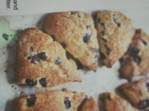 2. With mixer on low speed, add the egg and heavy cream in slow stream. Mix until a thick, stiff dough forms. Add the blueberries and mix until blueberries are incorporated.