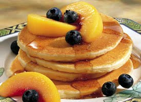 Stir all ingredients until blended. Pour by slightly less than 1/4 cupfuls onto hot griddle.