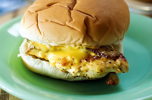 Place chicken on a clean plate and blot excess liquid with paper towels. Now place each chicken breast, one at a time, between two sheets of wax paper. Press paper around the edges a little. This will prevent tiny bits of raw chicken from flying across the room and landing in your coffee cup. Now, with the smooth side of a mallet, pound the chicken breast just to even out the thickness. The point is not to pound it to paper-thinness, but to get the chicken breast a uniform thickness so it will cook evenly. Cut the package of bacon in half…and arrange the half-slices in a skillet over medium to medium-low heat. I almost always cut bacon slices in half before cooking; they keep their shape better and cook faster. Cook the bacon until chewy…and drain on paper towels. Then, unless you want to experience excruciating angina tomorrow, pour off all the grease. Put the skillet back on the heat (still medium to medium-low). Add about a tablespoon of bacon fat back to the skillet. Now take the Lemon Pepper…And start sprinkling on both sides of the pounded chicken breasts. Make sure the pan is nice and hot again, then add the chicken breasts to cook. Cook the chicken breasts on one side for about four minutes, or until the edges are no longer pink. After you flip the chicken breasts, begin arranging the cooked bacon slices on the cooked side of the breasts. Now lay slices of cheese on top of the bacon. You can use whatever cheese you like! I think pepper-jack would be great, or cheddar or maybe even Swiss. Now, cover for a few minutes to let the chicken finish cooking and to allow the cheese to melt. Done! Without fail, in the time it takes for the cheese to melt thoroughly, the chicken finishes cooking. Just don’t overdo it or everything (even the cheese) will start to dry out. At this point, if you’d like to forgo the whole bun-sandwich scene, you could just serve it up as is, with maybe a twice-baked potato and a salad. Or just a salad. This makes a yummy, albeit decadent, dinner. Also, I prefer to use bakery-fresh Kaiser rolls rather than those prosaic, mass-produced hamburger buns. I like to put a little Dijon mustard on mine. I have to say, this sandwich is oh so delicious on its own and it doesn’t need much adornment. So go easy on whatever condiment you use.