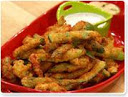 Coat the chile strips in the flour, egg and breadcrumb mixture, and place on a baking sheet in a single layer. Roast the chiles on the baking sheet, turning halfway through baking, until golden brown and crispy, about 18 minutes.