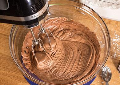 Beat at medium speed for 1 to 2 minutes, until creamy. Add the cooled chocolate, and beat until well combined. Add more milk, if necessary, until the frosting reaches spreading consistency.