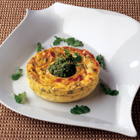Serve the sformatini warm or at room temperature with the pesto dolloped around the plate. Or use a round cookie cutter to create a pocket in the center of the sformatini and place a spoonful of pesto there. Traditional basil pesto would also be delicious with the sformatini.