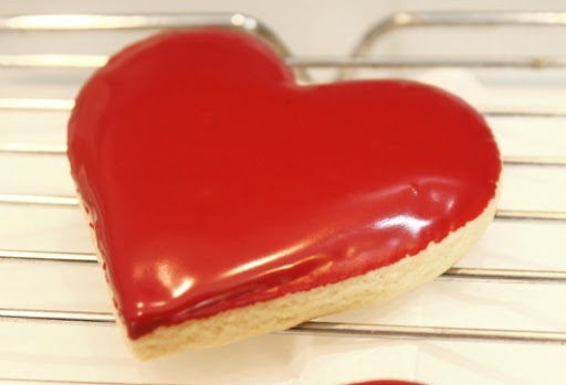 The lollipop stick helps remove the majority of the excess icing without having to wait for the excess to drip off without messing up the icing you want to remain on the cookie. It also allows for an even layer of icing to remain on the cookie, and when turning the cookies upright, no drips went over the edges of the cookies (iced in red, as that was the correct consistency of icing) the pink was too runny and ran over the edges-that is why I’m showing you both. Hopefully the photos will help you to achieve the consistency needed for smooth finished cookies.