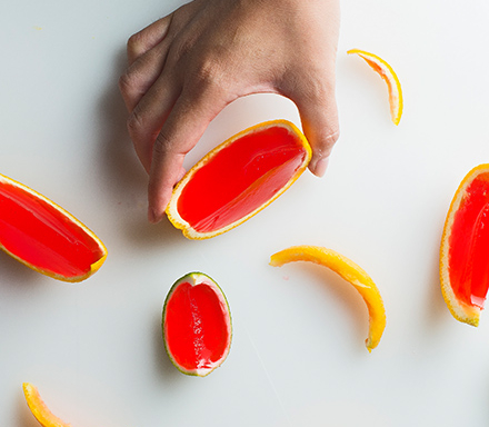 Divide the hot juice mixture among the orange shells and chill in the refrigerator until the gelatin sets, about 2 hours.