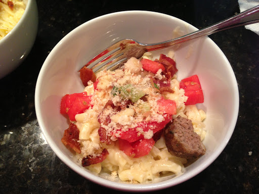 From: Noodles & Co. (I made meatballs instead of mixing the hamburger meat into the sauce)