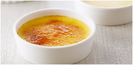 To serve, sprinkle each custard with a thin layer of sugar. Carefully ignite a kitchen butane torch and caramelize the sugar by moving the torch back and forth over the custard, about an inch or 2 away from it. Sprinkle another thin layer of sugar over the first layer and torch it, repeating another 2 times or until the desired caramel layer is achieved. Serve immediately.