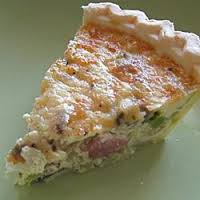 In a medium bowl, mix the bacon, onions, and both cheeses. Place this mixture in the unthawed pie crust.