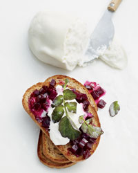 Top each whole-grain toast with a spoonful of the glazed beets, a piece of burrata and a sprig of watercress. Drizzle with extra-virgin olive oil, garnish with the flaky salt and serve.