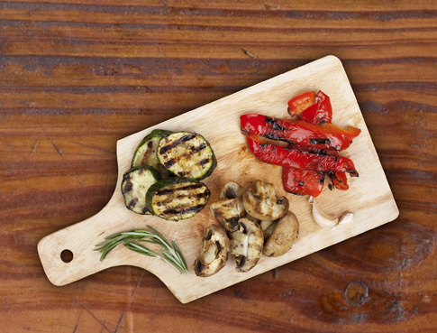 * Place vegetables on a hot, oiled grill and don’t move for 5 minutes to ensure nice grill marks. Add a  few sprigs of rosemary on grill for extra flavor. Turn vegetables once and remove after 2 minutes.