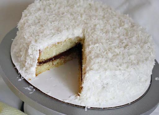 Coconut Layer Cake with Swiss Meringue Buttercream and Chocolate Ganache Filling