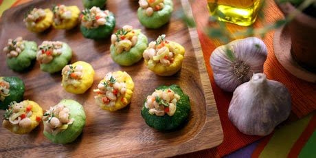 6. To fill, spoon a little bean filling into patty pan squash and chill until ready to serve.