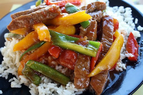 Looking at this simple pepper steak recipe it looks quite lengthy. But actually it is pretty simple and doesn’t take that long to prepare. This recipe is kind of different. It calls for diced tomatoes which is kind of unusual, but gives it a unique flavor. If you like pepper steak give this recipe a try. It is very colorful for company and it tastes great.
