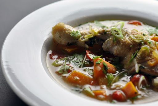 3. Add pumpkin and juniper berries. Add chicken pieces and simmer uncovered for around 20 minutes – until pumpkin is tender and chicken cooked through.