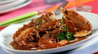 LANGOSTINOS EN SALSA DE CHOCOLATE