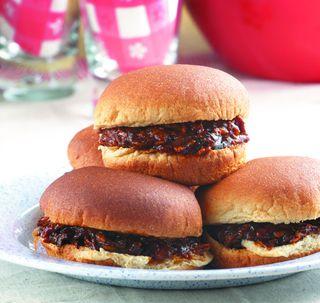 Heat oil in a large skillet over medium heat. Cook onions in oil, stirring occasionally, until softened, about 10 minutes. Add pork to onion mixture. Cook, stirring occasionally, until heated through. Stir barbecue sauce and honey into pork mixture. Cook and stir until heated through and thickened, about 10 to 15 minutes. Serve on rolls.
