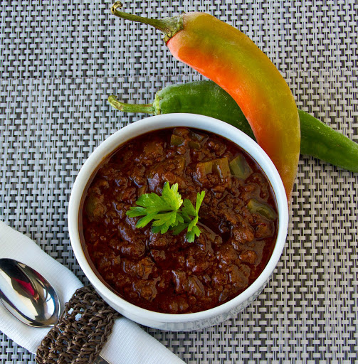 With the chipotle peppers, you can only use the adobo sauce if you prefer to keep the chipotle flavor with less heat. Using 100% cacao powder gives the chili a full, rounded flavor—similar to a mole. Be sure it is 100% and not containing any hidden sugars, soy lecithin or added cacao butter. I use the 100% powder from ChocoVivo.
