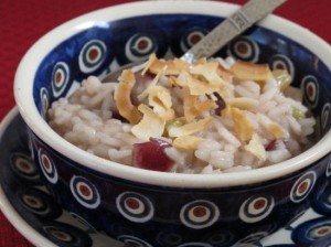 Ladle into bowls and serve with either dried cranberries,toasted coconut or sliced almonds if desired.