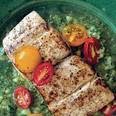 Gazpacho (a traditional chilled soup that originated in Spain) becomes a sauce for fish fillets. Cool cucumber and hot chile are a treat for the tastebuds.