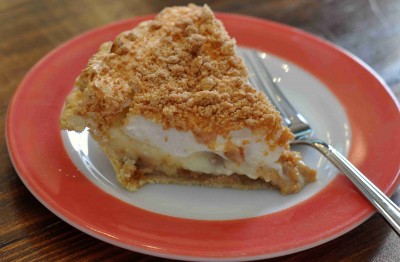 Beat egg whites until foamy, add sugar. Continue beating until soft peaks form. Spread over top of pie, being careful to seal at edges. Sprinkle remainder of peanut butter crumbles over top of pie.