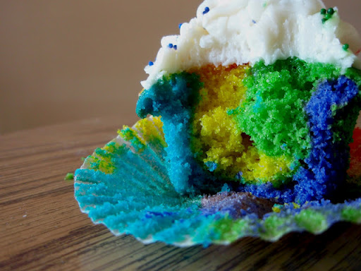 Divide batter evenly into six bowls. Dye each bowl of batter a different color.