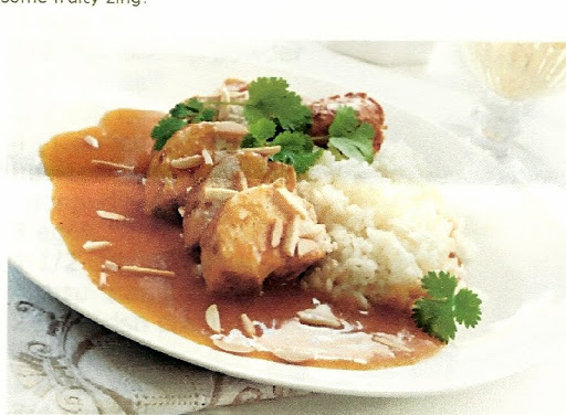 remove from heat. Spoon pan juices over chicken; sprinkle with onion and almonds. Serve with rice and vegetables of your choice.