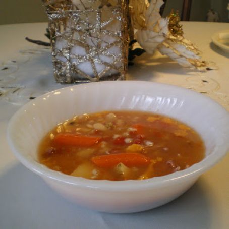 Make your own homemade vegetable soup, starting with a big ham bone! Add other vegetables, to your preference. This is a classic vegetable soup recipe with beans, carrots and potatoes.