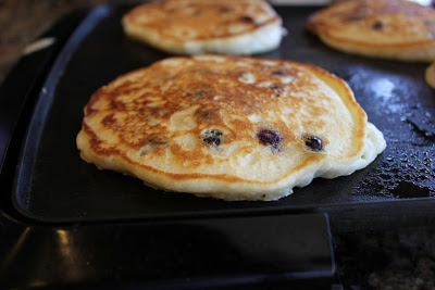 9. Pour about 1/4 cup of batter onto your skillet to make each pancake. When they are golden brown on the bottoms and the bubbles along the tops have stopped popping, flip them over.