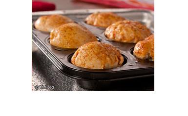 In small bowl, combine oil and paprika, then brush it over tops of chicken. Place muffin tin on cookie sheet and bake 25 to 30 minutes, or until no pink remains and juices run clear.